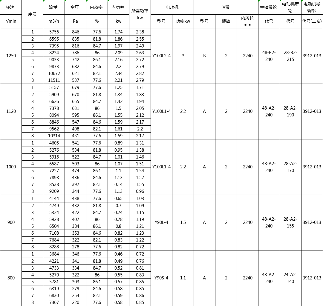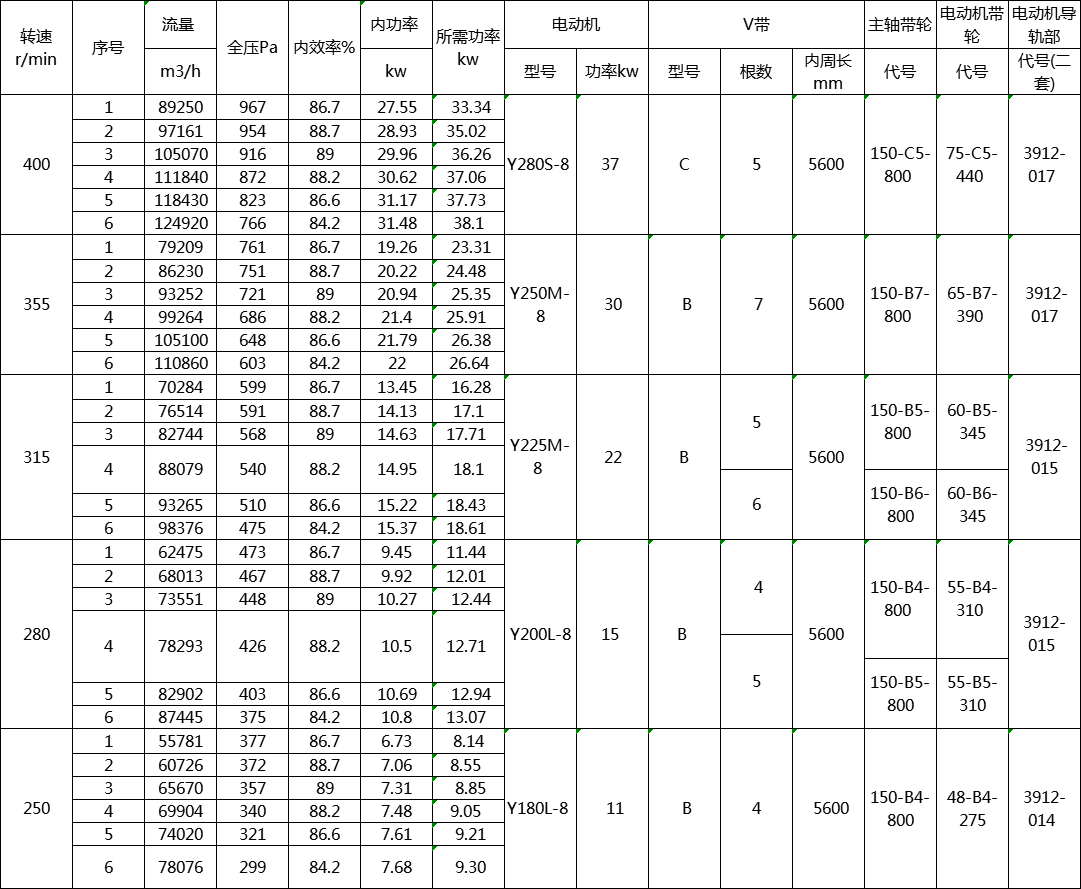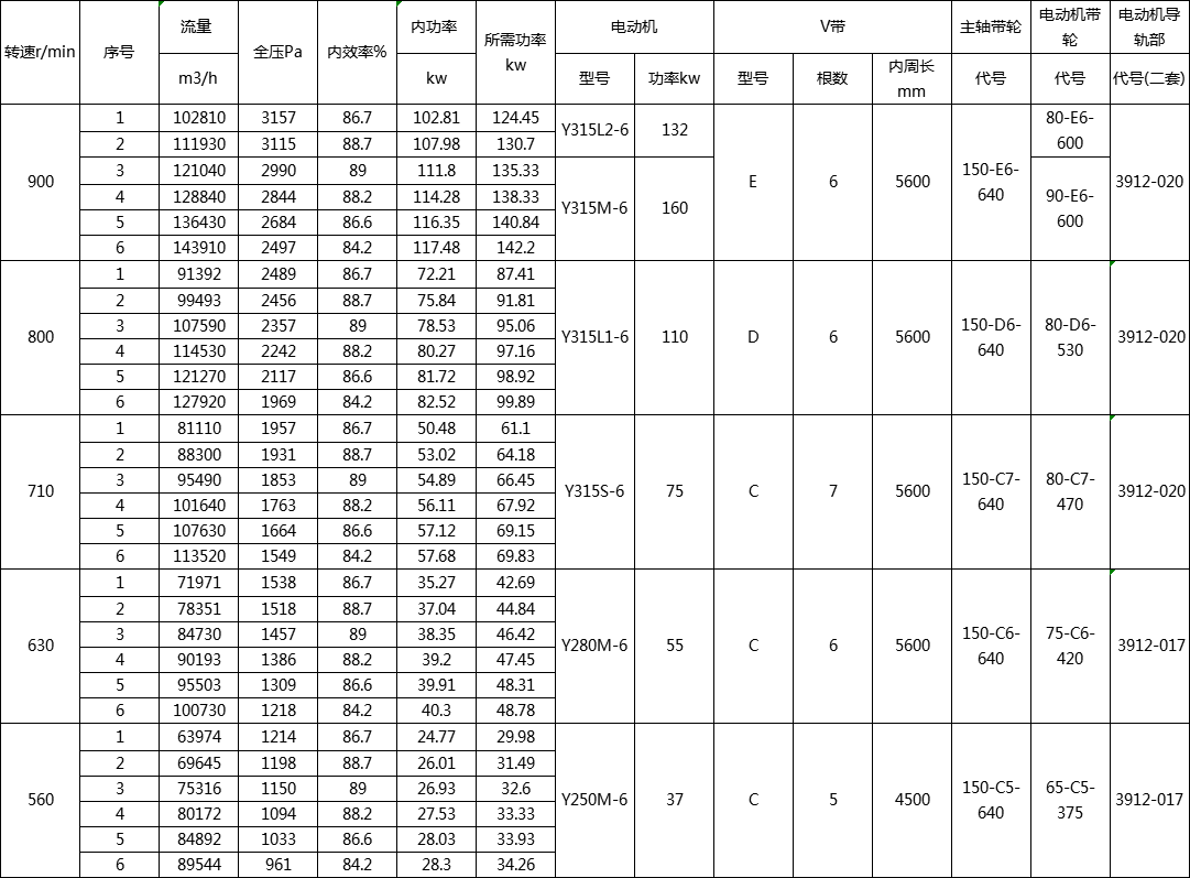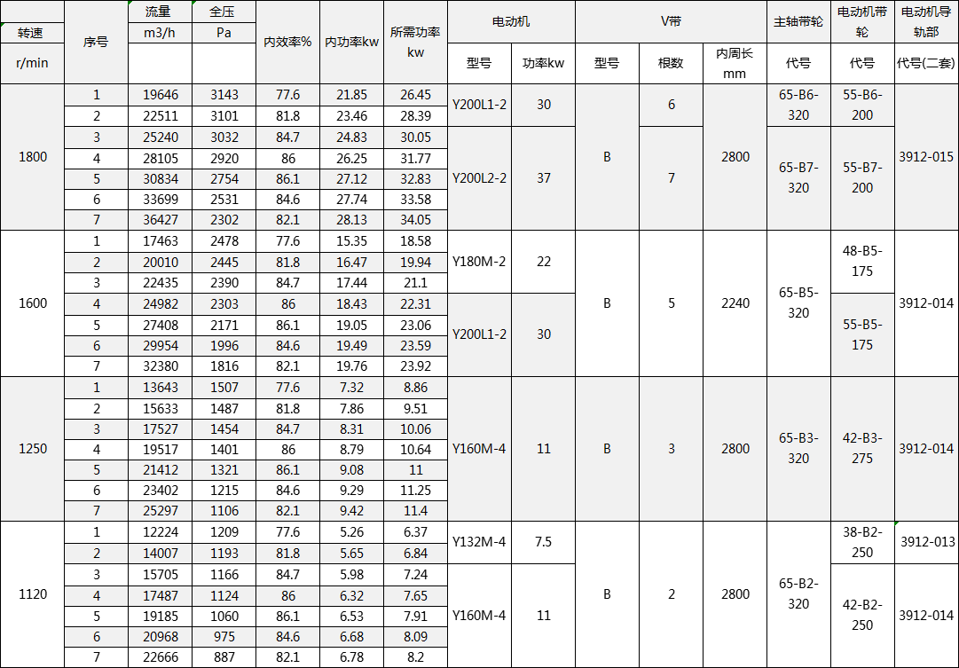 本样本只给NO.10样机的无因次性能表及曲线(见下图)、由该性能表和曲线计算NO.10以上风机的有因次性能参数。