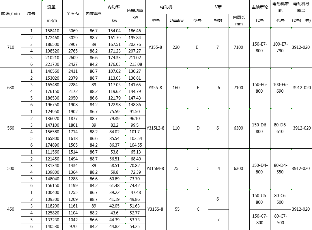(1)叶轮由10个后倾机翼型叶片,曲线型前盘和平板后盘组成。用铜板或铸铝合金制造,并经动、静平衡校正,空气性能良好,效率高、运转平稳。